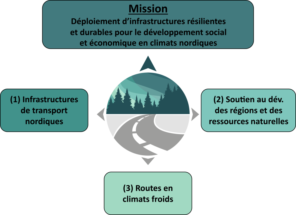 Dans un contexte de changements climatiques, le besoin de développer et de maintenir des infrastructures fiables et sécuritaires pour les communautés nordiques et pour accéder aux ressources naturelles dans les régions nordiques du Canada requiert un savoir-faire de haut niveau en ingénierie nordique. L’objectif visé par cette chaire est de développer des outils technologiques pour favoriser le développement responsable d’infrastructures adaptées aux conditions nordiques et aux changements climatiques.